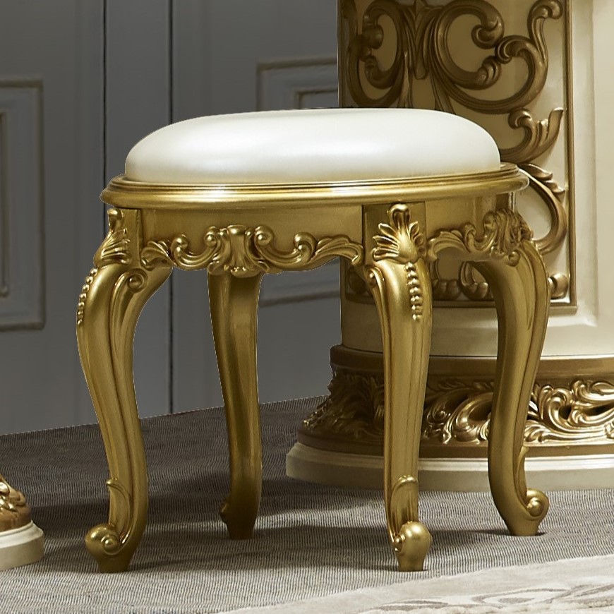 Elevate your bedroom to a luxurious sanctuary with this vanity stool upholstered in white bonded leather, featuring cabriole legs adorned with elegant decorations, adding a touch of sophistication to your royal boudoir.